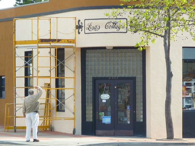 Oh, by the way, we finally had enough sunny weather to get our sign up on the building. Here is Rich surveying his wife Jurene’s and his granddaughter’s Jenny’s work! They did a great job!