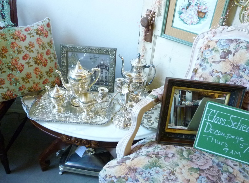 Ria will also be teaching a class on decoupage, the craft of applying paper with an adhesive sealer to decorate all kinds of items. We’ll try to post photos of an example of what you’ll be making for the class. Again, the cost is $15 + $5 materials fee. THAT class will be Thursday, May 19th at 9 am.